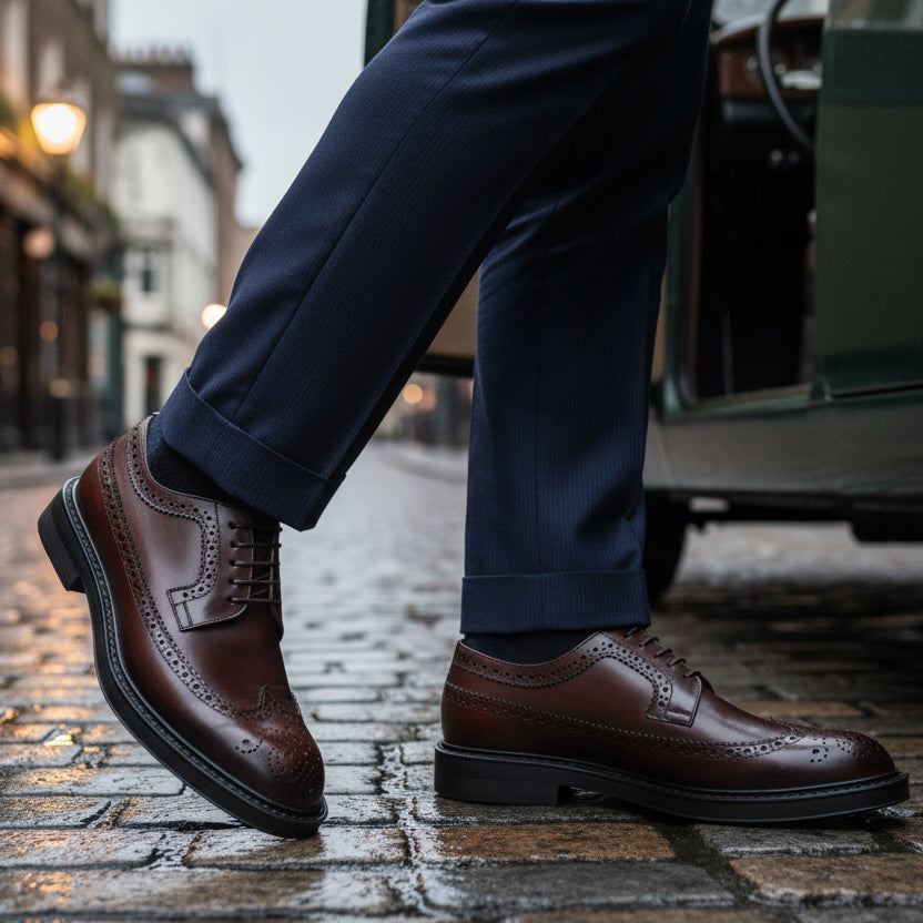 Derby long ring in vitello francese lavorazione artigianale sottopiede in lattice fondo light