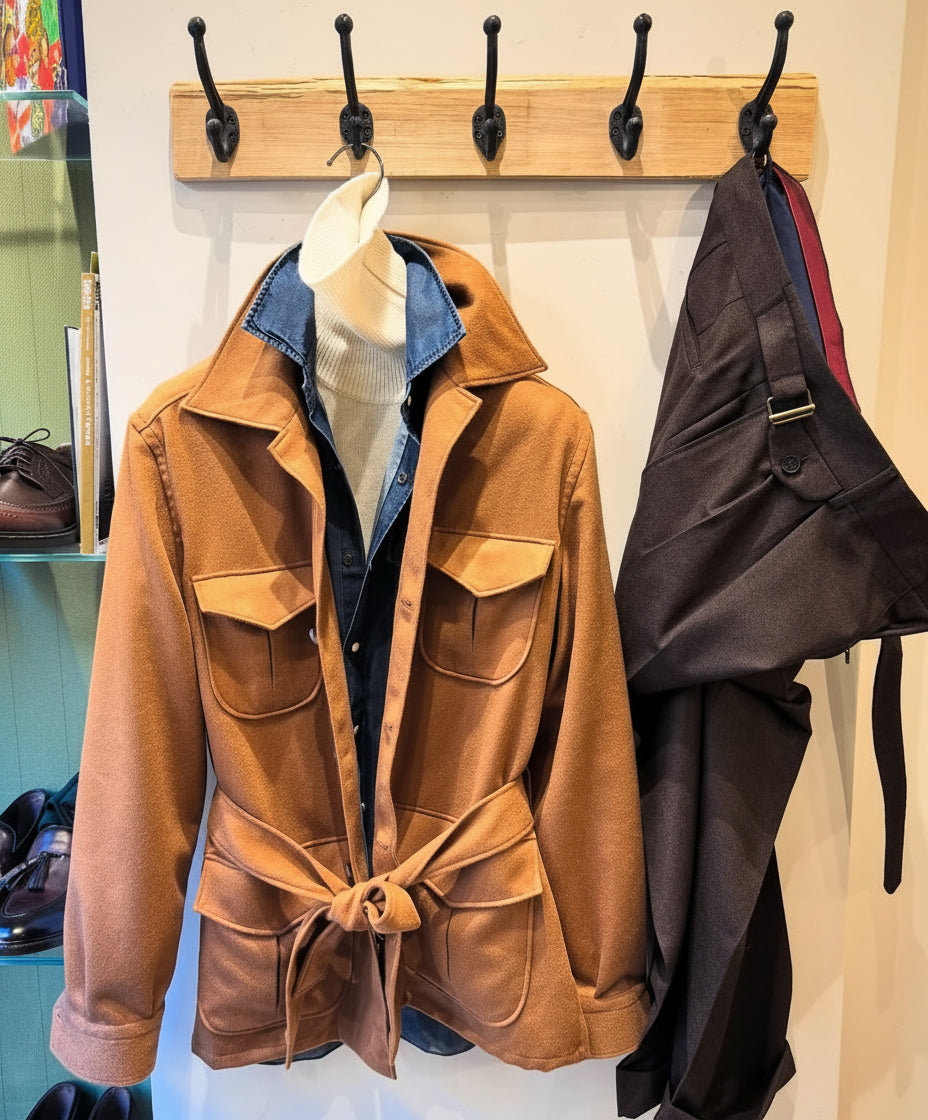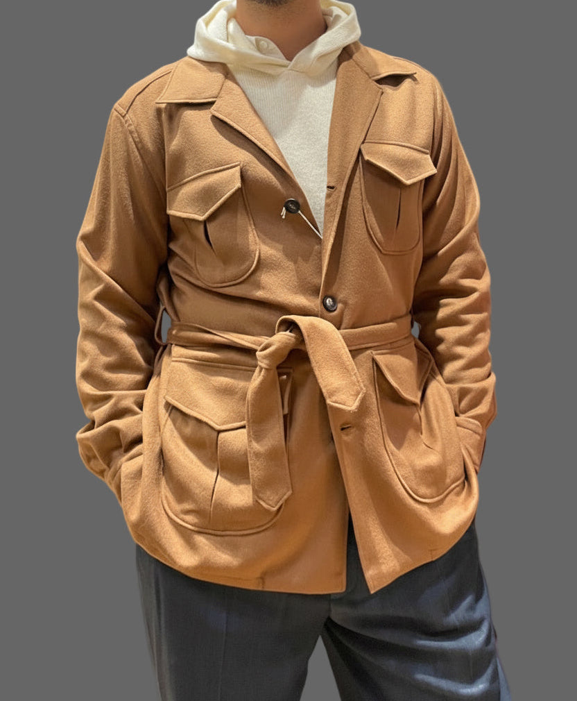 Sahariana quattro tasche petto bavero in Baby Camel Loro Piana